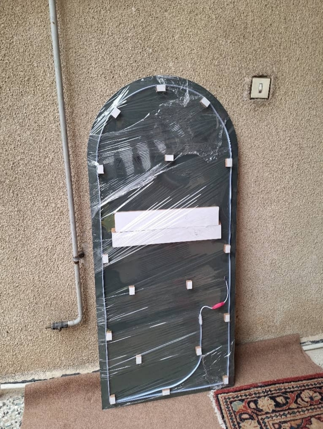 (برای نصب باید تکه ای از ام دی اف که برایتان ارسال میشود را به دیوار پیچ کنید و بعد تکه متصل شده به آینه را روی آن سوار کنید_به صورت نر و ماده)